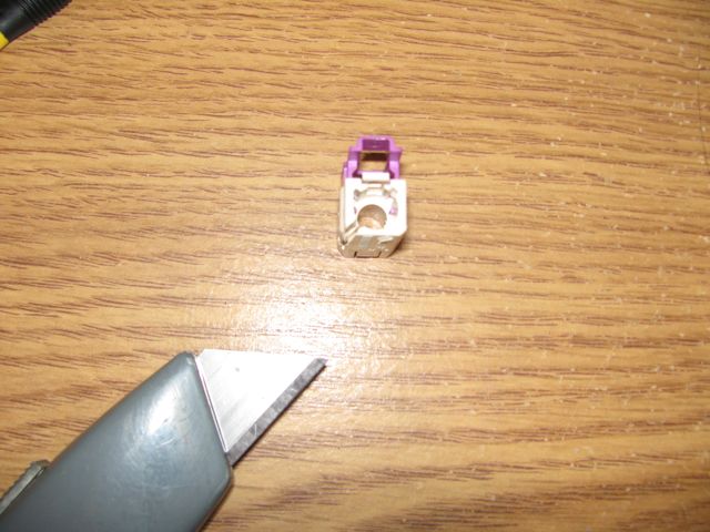 I know this has been around a while but no-one seems to have a definitive answer posted so I thought I would clarify things. There are actually two 'eject box wiring compatibility issues'. The first is that the combined assist/BT module (which is designated option SA633 by BMW) is designed to operate with Eject Box #84-21-6-946-063. SA644, which is the standard BT telephone without assist, is designed to operate with Eject Box 84-21-6-933-415. The eject boxes are physically the same - however the wiring is different. Photos of this eject box - as I installed in my X5 - are below. It is possible to covert from one eject box to the other - to do this you need to follow the wiring diagrams for each and work out the different pins for each system. The only difference between the two eject boxes is that the brown/white/red & green wires goes to different pins on the same plug. The second 'eject box wiring compatibility issues' is what is alluded to in the post above which is the fact that the antenna lead from the eject box in an '04 is male and so is the corresponding connection on the TCU. The cable shown above (84 32 0 138 217 which is a standard BT cable with a white Fakra connector at one end and a black/purple connector at the other) will NOT solve this problem without modification. The black/purple fakra female connector will plug into the cable to the eject box but the white connector will not match the TCU without modification. The correct coloured Fakra connector to plug into the TCU would be WINE RED. The difference is the slots are at different positions. To modify the white connector REMOVE IT FROM THE CABLE using a small jewellers screw driver and use a utility knife to cut a slot in the correct position! Then place the connector back onto the cable and connect to the TCU. Photos are below BUT NOTE I CUT THE SLOT ON THE WRONG SIDE SO HAD TO RECUT ON THE OTHER SIDE! The cable from the bumper antenna will simply plug into the TCU! I hope this helps! |