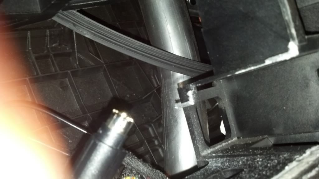 9. Remove hood latch lever using torx and other torx screw holding kick panel in place.