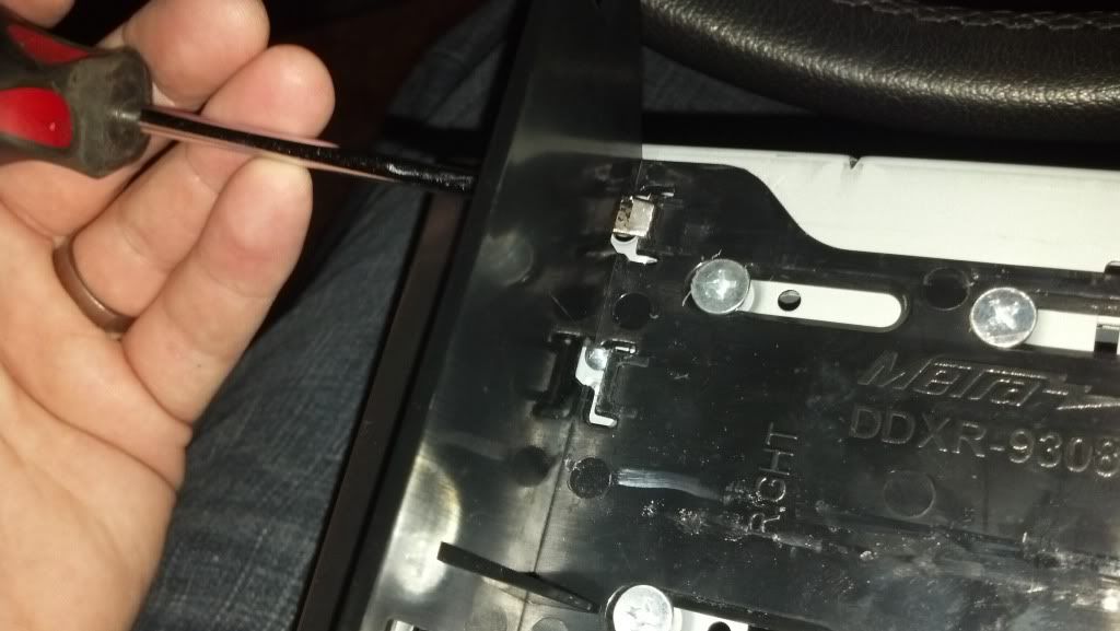 Once you get the unit in all the way you need to use a screwdriver or similar prying tool on the outside edge to remove the unit. You can sort of see it here, I've got the screw driver inserted as it would be if the unit was installed.