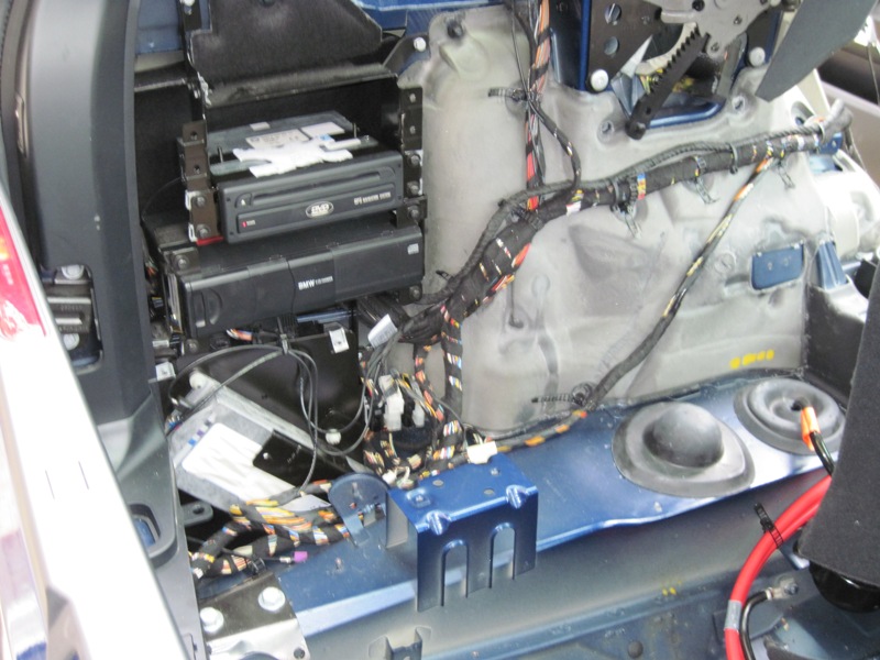 Finally I wrapped all the wires in the back together and tied them to the chassis. Put the trunk back together and drove the car. All works just fine. Last items is to find the correct cable for the red connector on the Nav processor.
