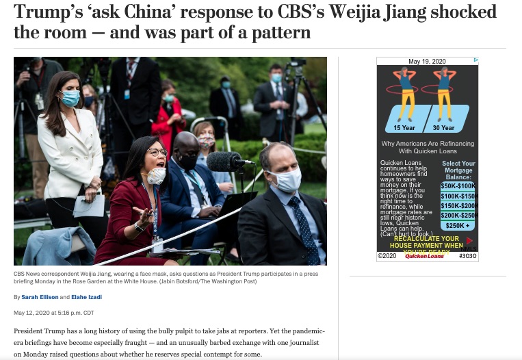 Trump has used the "Nasty Question" reply many times when confronted with a question he doesn't want to answer. I wasn't referring to Weijia Jiang but since you brought it up.