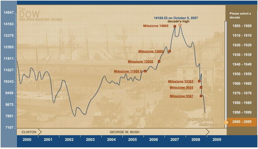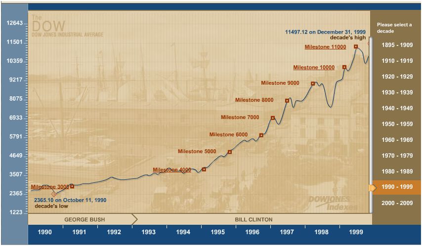 Dow in Clinton years and Bush years.