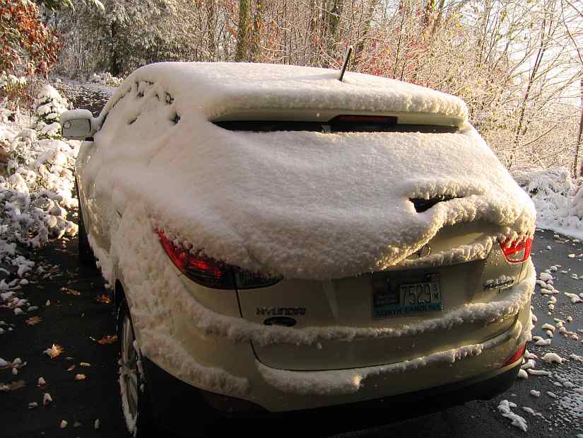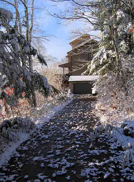 wow. snow already.. Great shots mD, love how the snow stuck to the leaves on the driveway...looks pretty cool