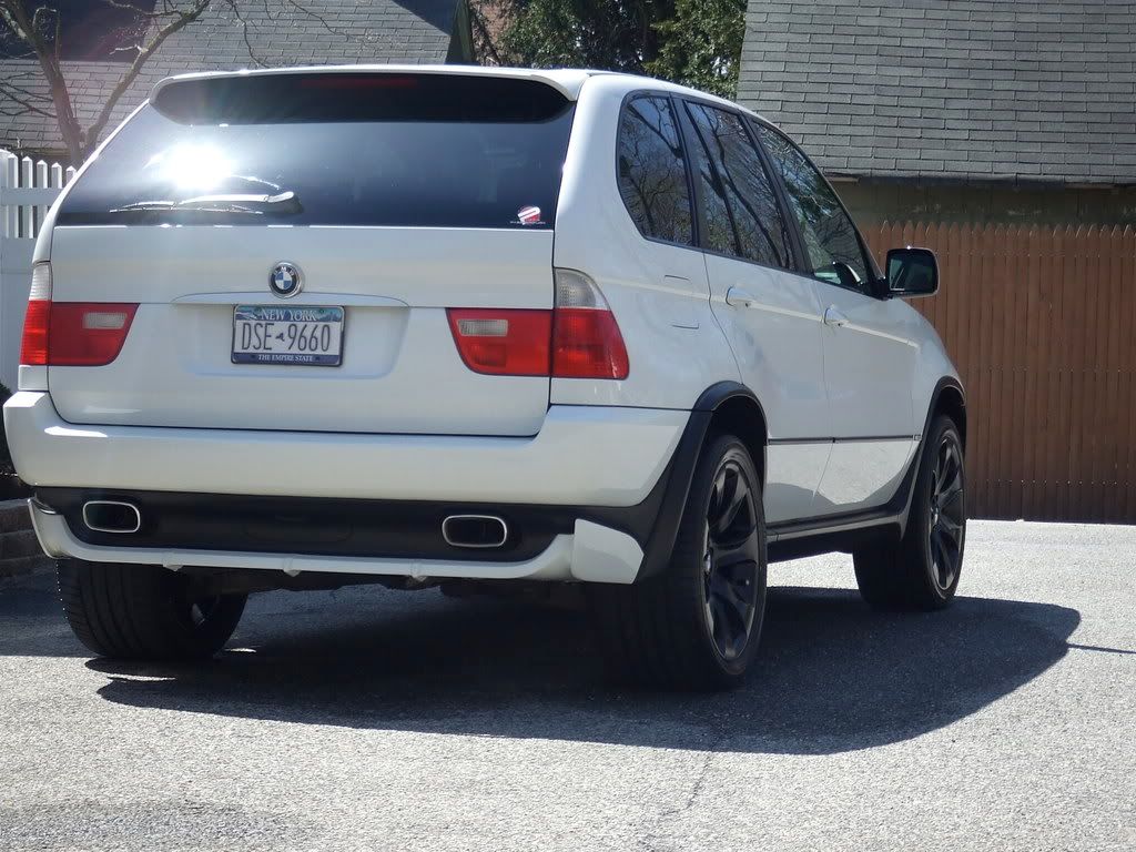 both sets shown in the pictures are bolt on. i would go with the bottom set. they are a lot nicer plus they have the two inlet to two outlet like you need. i had the ones on top and sent them back 5 mins after i got them. they are to big a bulky looking. i was lucky enough to get a set of 4 black chrome exhaust tips from a 4.4 and i put 2 tips on my 2006 3.0. it looks really nice because my x5 is black. but if i were you i would deffinitly go with the bottom set, at least theres some shape to it.