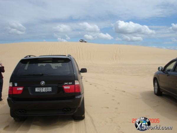 Another X5 in Aus here. I have taken my 2004 X5 4.4 off road a few times this year with a tag-along 4WD tour company: Great divine tour and they are very impressed with the X5 off-road capabilities considering its low clearance. The new X-drive system is very capable. We did a tour at Stockton beach in NSW on sand dunes/beach and the X5 has no problem whatsoever as long as the DSC button is pressed. On a steep sand hill challenge, even the tour guide with his turbo diesel Toyota landcruiser could not get up and my X5 had no trouble going up (and it was my first time going off-road too). I am going on a 2 days 4WD driver training in a few weeks time and looking forward to the most out of this awesome luxury SAV! Here are a couple of photos on past trips (not sure if it upload correctly, haven't been on the forum for a while). Enjoy. QT http://www.xoutpost.com/attachment.php?attachmentid=2699 http://www.xoutpost.com/attachment.php?attachmentid=2700 |