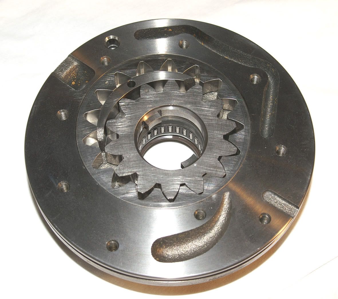I’ve now disassembled my old (108k mile) 5HP24 torque converter so that the lock-up clutch, which was giving me vibration problems, can be examined. The vibration issue disappeared when the converter was replaced with a re-manufactured unit. http://i260.photobucket.com/albums/i...Impeller-1.jpg Impeller vanes are radially straight in the F38 ZF 5HP24 torque converter http://i260.photobucket.com/albums/i...r/Stator-1.jpg Torque converter stator element which houses a one-way clutch so that the stator is held stationary during the torque multiplication phase but can then freewheel once the coupling point is reached and the fluid flow direction changes http://i260.photobucket.com/albums/i...eteturbine.jpg Torque converter turbine http://i260.photobucket.com/albums/i...clutchside.jpg Engine-side of turbine showing castellated slots which engage on lock-up clutch friction plate http://i260.photobucket.com/albums/i...ullLUCassy.jpg Following removal of turbine, lock-up clutch assembly is exposed http://i260.photobucket.com/albums/i...drivinghub.jpg Clutch piston is friction welded into impeller casing and part of its hub has to be machined away to release piston. Friction welding process has to be accurate to apply correct preload from six tangential springs to clamp LUC in ‘on’ position (i.e. transmission has to feed hydraulic pressure to engine side of piston to hold the converter ‘open’) http://i260.photobucket.com/albums/i...LUCPiston1.jpg Lock-up clutch piston after removal http://i260.photobucket.com/albums/i...lateinsitu.jpg Lock-up clutch friction plate in impeller casing http://i260.photobucket.com/albums/i...plateclose.jpg Though I was expecting to find the friction plate completely worn it had 0.72mm (0.028”) of material left on each side (but unfortunately I don’t know what the thickness of a new plate is nor ZF’s wear limit) and looked in fine condition http://i260.photobucket.com/albums/i...attermarks.jpg http://i260.photobucket.com/albums/i...ttermarks2.jpg The only indication that there’d been any problem with the clutch were chatter marks on metal friction face of the piston http://i260.photobucket.com/albums/i...lersurface.jpg Opposing metal track on impeller casing looked smooth & free from damage So, although not immediately obvious from its condition, this lock-up clutch was causing vibration issues in my Range Rover at low engine speeds (the cattle grid noise) which were cured once it was replaced with a re-manufactured unit. My only theories at the moment are that : a) the friction plate had worn sufficiently for the preload applied by the tangential spring straps to reduce enough to cause a stick-slip effect during the converter’s ‘continuous slip’ operating phase (typically only around 3% relative speed) b) the friction plate started out with grooves in the friction material to allow fluid to flow across the surface when it was engaged and these had worn away causing the friction faces to overheat (or at least change the friction coefficient). ZF vs GM Okay, so maybe the friction material in the ZF 5HP24 torque converter LUC wears eventually to the point at which it causes a vibration due to lack of clamp force – a sort of early warning system. Judging by the amount of material still left on the plate though, replacement isn’t urgent and the transmission will soldier on for a good while without causing further damage. On the other hand, the GM 5L40-E transmission in the 3.0l wears through its LUC friction material (due to low system pressures) without any warning at all - it’s fitted with a torsional vibration damper - and the first you know about it is when it dumps huge quantities of metallic debris into the fluid causing the whole transmission to grind to a halt, by which time it's too late. http://i260.photobucket.com/albums/i...verter/LUC.jpg I think I prefer the ZF system! Phil |