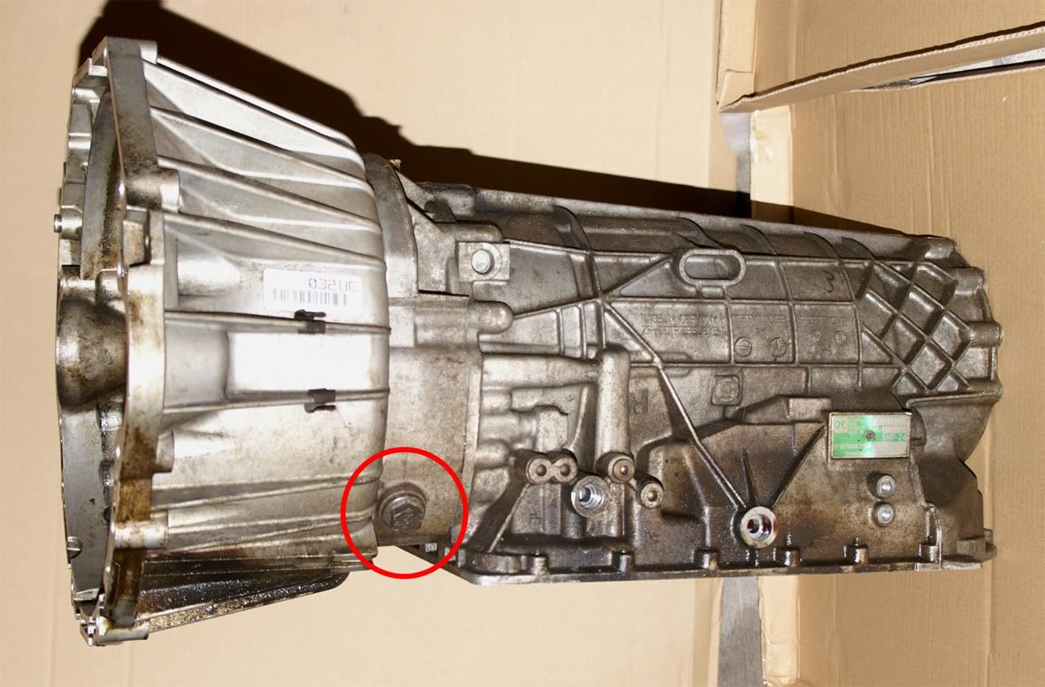 I bought a used 5L40-E from a 2003 X5 and it has the fill plug and the linkage connection on the passenger side of the transmission, where as mine, a 2002 has it all on the driver side. Whoops.