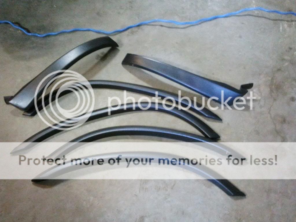 They are all fiberglass. The brows are grey colored, the flares are the same shade of black, or close, as the ones on the SAV. Not sure why I have 6 pieces for the flares. Thought I should have only 4. http://i380.photobucket.com/albums/o...pse774b17d.jpg http://i380.photobucket.com/albums/o...ps457f83a7.jpg http://i380.photobucket.com/albums/o...ps0b38a99e.jpg http://i380.photobucket.com/albums/o...psd92d8392.jpg |