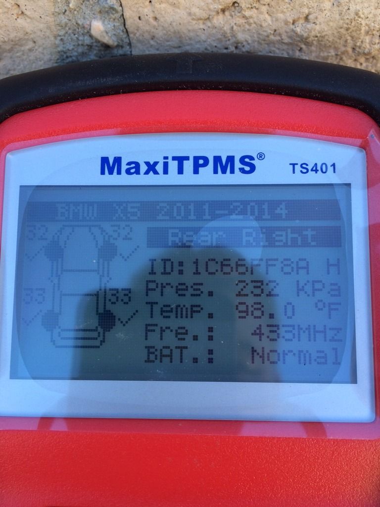 I rotated my non directional, staggered tires side to side due to some "Heel/Toe" wear on the front tires. My TPMS had an error for a bit, but then cleared up on its own. I need to use the TS401 to gather serials numbers and use my MaxiDAS, MODIS or Solus Ultra to verify the serial number/location. Anyone know if the BMW system will automatically detect the TPM location on the car or do they always need to be "programmed"? I grabbed one of the TS401 for the decent price and had it 2 days after I ordered it via PriceFall. I also like the keyfob test function as well. It is "near field" but it works pretty good. The Energizer Keyfob testers at the local auto parts stores seem to be the best "Far Field" keyfob testers I have seen. |