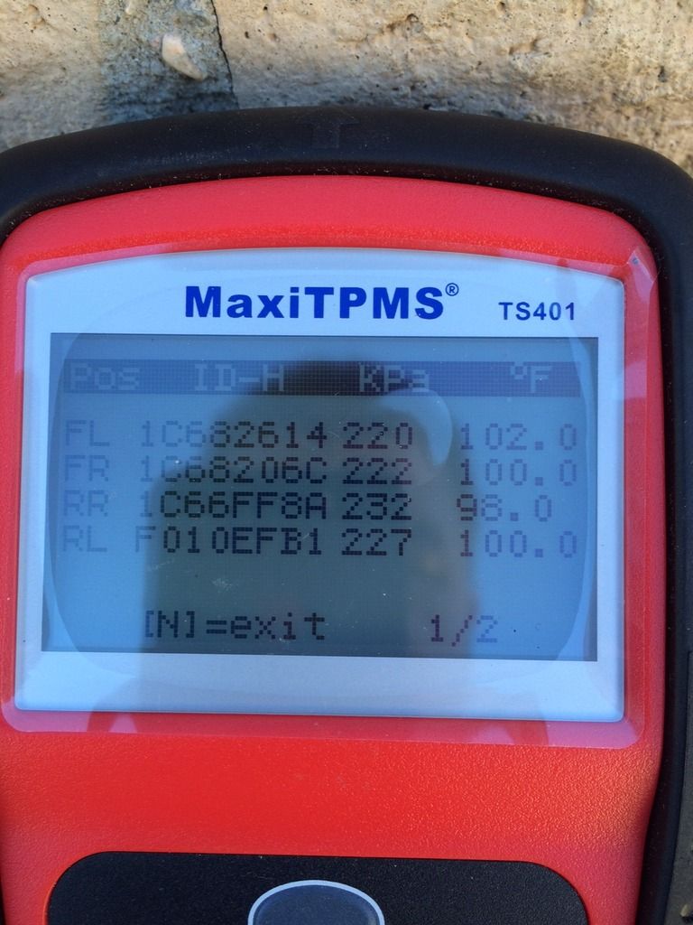 Again, for anyone having problems with the TPMS, I use universla programmable MX sensor with success. Cannot beat the price @~$100 for a set of 4. Needs a programmer too,~$50, but still great deal. |