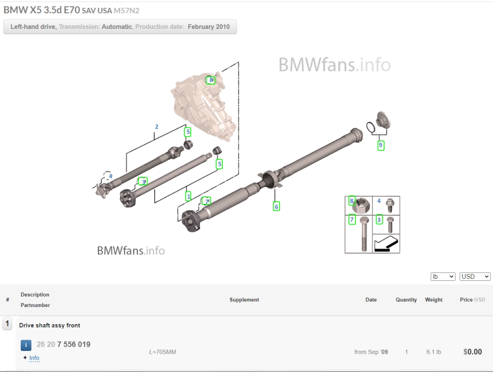 Edit: Looks like the diesel front driveshaft on the M57 diesels does not use a U-joint. One less thing to worry about. Attachment 80148 |