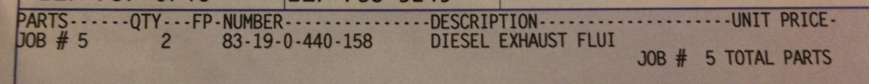 Despite the DEF angst in this and other threads, we have never had a single problem with DEF. No DEF warnings, no need to add DEF prior to a conditions based oil service, NOTHING. If I didn't know so much about the reported DEF issues, I might have been curious about the service ticket entry... "3 83-19-0-440-158 DIESEL EXHAUST FLUID WARRANTY" which anyone who has read this thread now knows means that 3 - 2.5 gal containers of DEF were 'used' to fill the two DEF tanks which together hold about 6.5 gals. of DEF -- under Warranty. People this is how it is supposed to work. Your 35d emails your dealer that it needs an Oil Service. And your dealer changes the Oil/Filter etc. and fills the DEF tanks with enough DEF to last till your next oil change, all under warranty. Meanwhile you enjoy driving your 35d and don't worry your pretty little head about the details of owning a diesel :) Funf Dreisig |